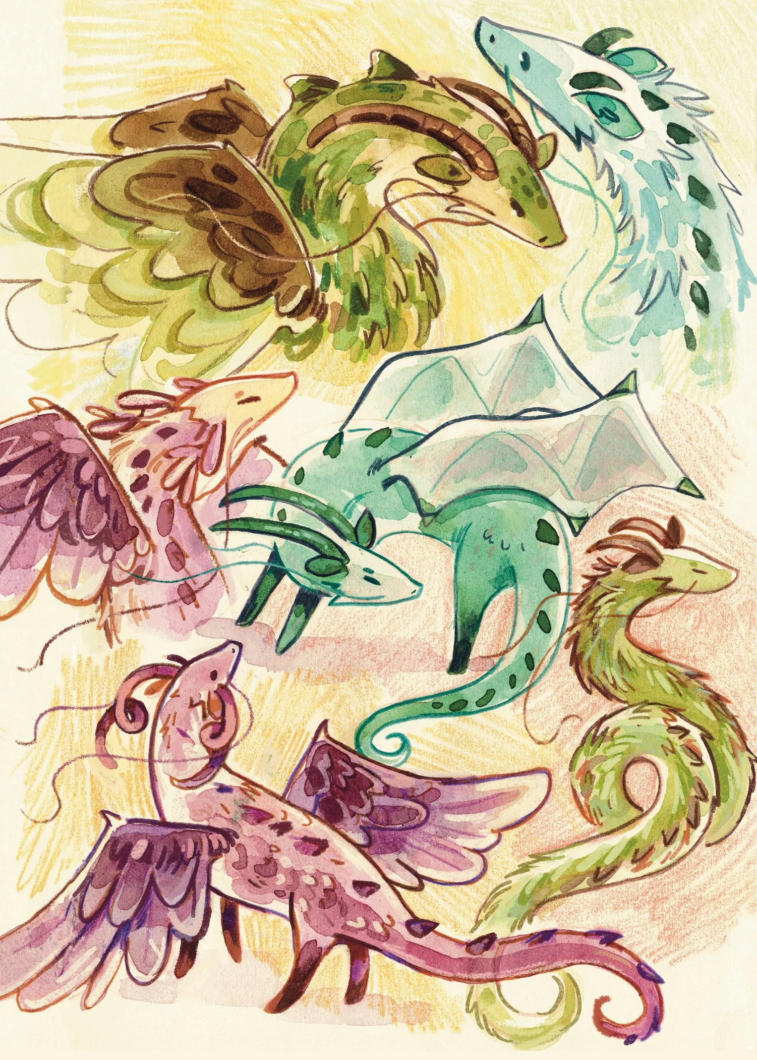 Every month, I scan a page from my sketchbook and send it out to my Patreon supporters. Here’s a highlight of my favourite ones from over the years.